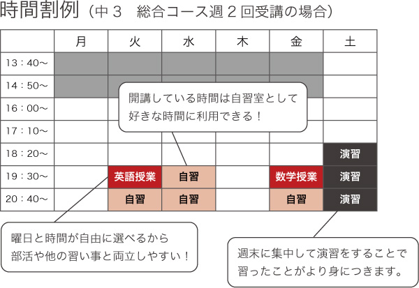 総合コース【授業(60分)+演習指導(60分×3回/週)】